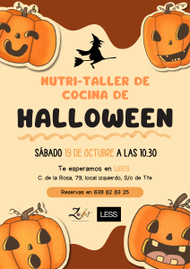 Brujas 🧙🏻♀️, fantasmas 👻, monstruos 🧟♀️ y muchas más recetas terroríficas le esperan a tu hijo en el nutri-taller de 🎃 Halloween 🎃 que tendrá lugar el sábado 19 de octubre en LESS.