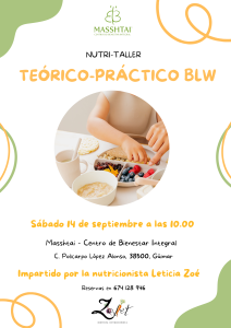Un taller de 3 horitas de duración que consta de dos partes: en la teórica 📖 aprenderemos todo lo que necesitas saber 🤓 para poner en marcha este método: que es y cuando empezar ⏱️, los tipos de BLW que existen, la incorporación de alimentos 🥑, el calendario 🗓️ de introducción, los alimentos a evitar 🍿⛔, las medidas de seguridad, que menaje 🍽️ BLW usar…